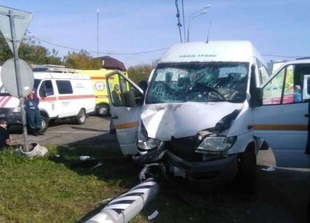 Девять человек пострадали при столкновении маршрутки со столбом в Подмосковье