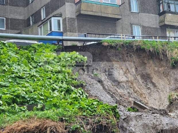 На Сахалине в нескольких метрах от многоэтажного дома сошел оползень